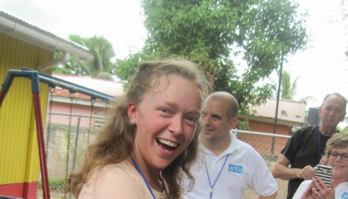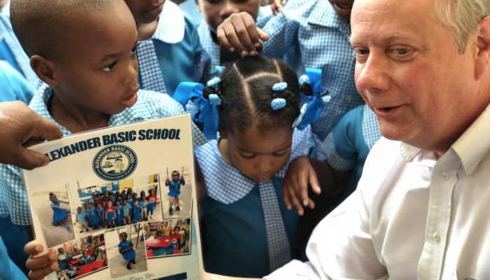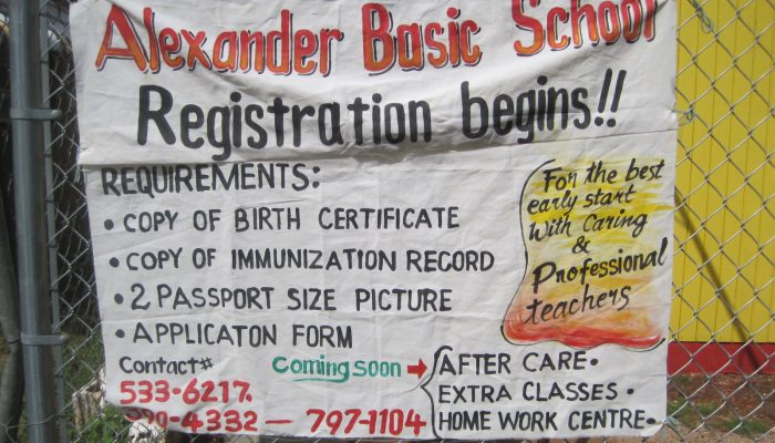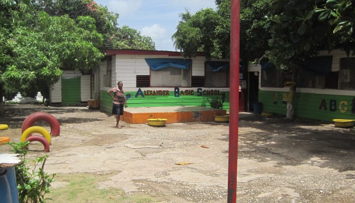 The Alexander Basic School Construction project entailed the construction of a 1,296-square-foot wooden schoolhouse with corrugated metal roof and concrete foundation, complete with three classrooms, an office, a sick bay, a kitchen, sanitation facilities, and a fenced-in playground with equipment. The classrooms were appropriately furnished and the kitchen equipped with a stove and a refrigerator.