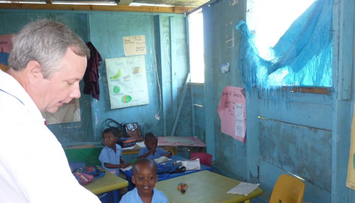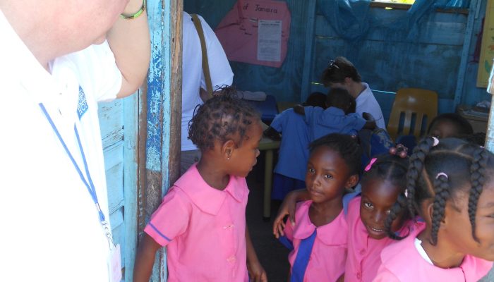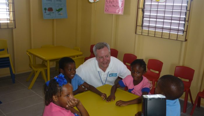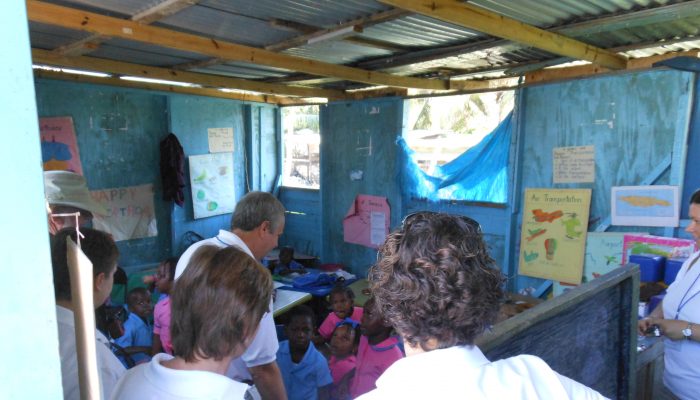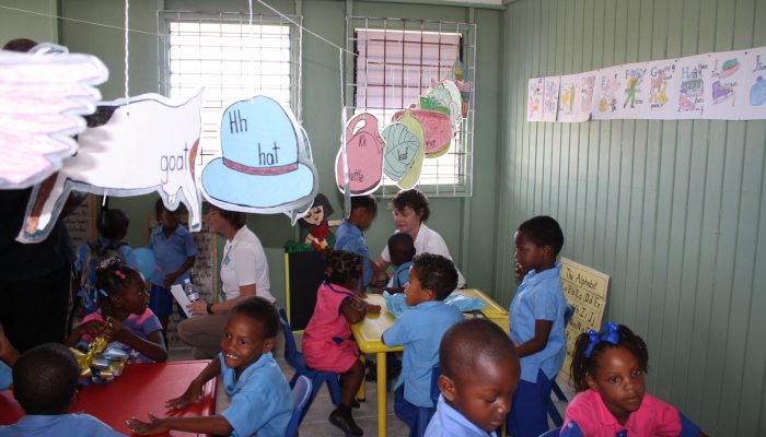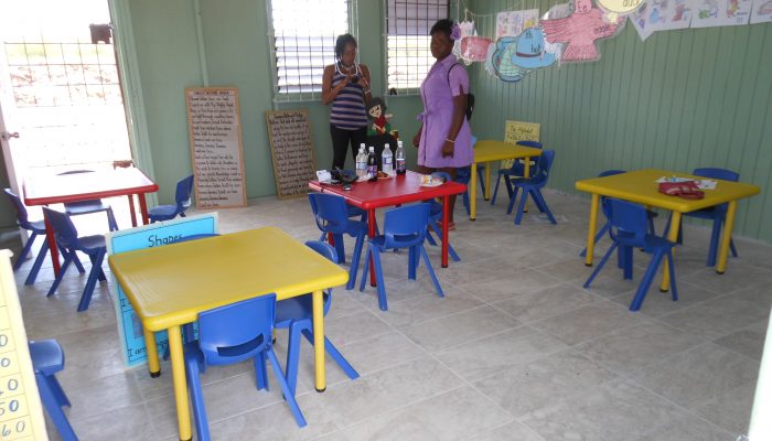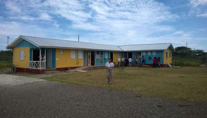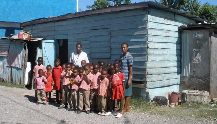 Following the success of our first two projects, our third endeavor was a new primary school in McCooks Pen, Jamaica. The children in this community were attending school in what could only be described as a shack in the midst of a cemetery with gaping holes in the walls and ceiling, a kitchen which consisted of a hot plate stove connected to a propane tank and a sanitation “facility” tacked onto the side of the building that was inadequate, unsafe, and unsanitary. The school conditions were so poor that it faced closure unless a completely new one could be built, and we are thrilled that we were able to help.