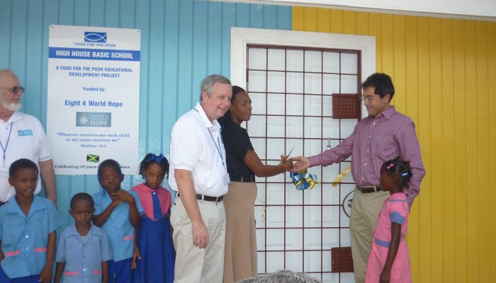 The new High House Basic School, dedicated in February 2013, has a small kitchen to ensure that the children have a hot meal during the day, a computer lab and counseling area, as well as sanitation facilities, which many families do not have available at home. Better yet, it is enclosed by a fence to keep the children safe from the nearby road, and it has a play area that allows students to just be children. As with our previous projects, the facility was constructed in partnership with Food for the Poor, using local labor, helping other members of the community to improve their economic conditions and standards of living.