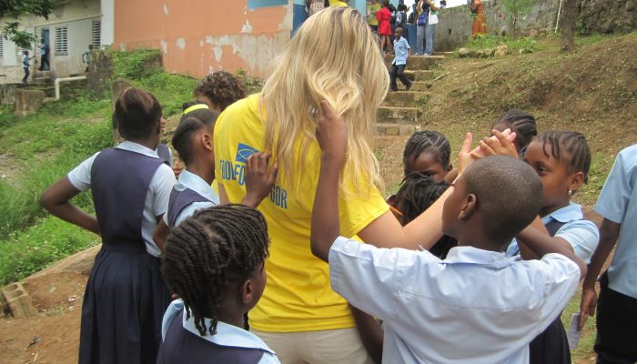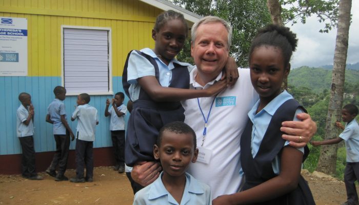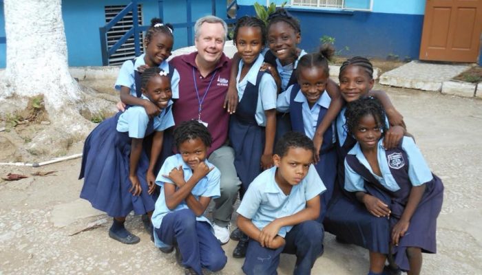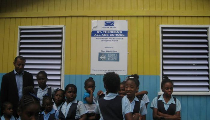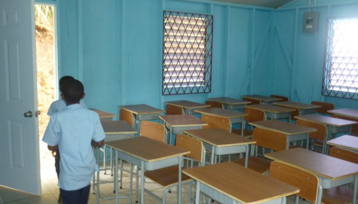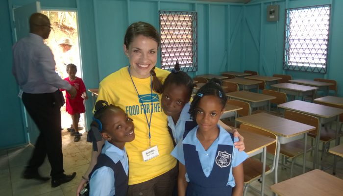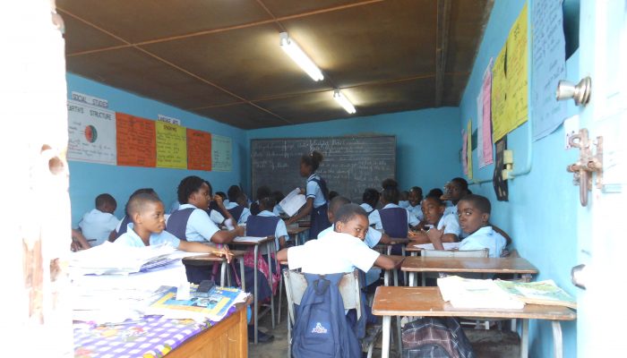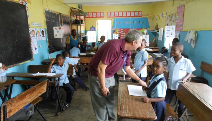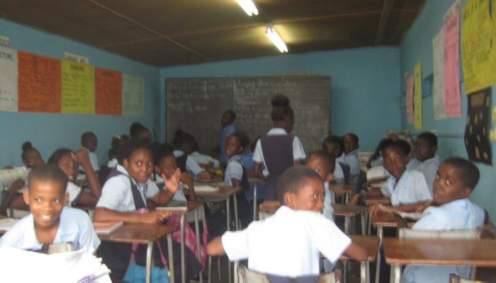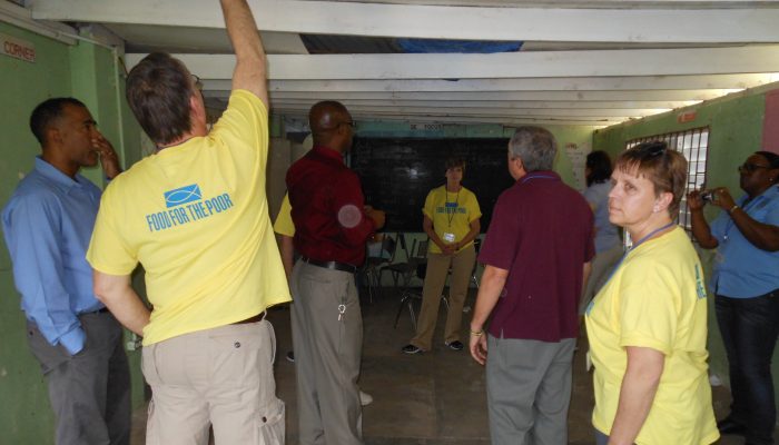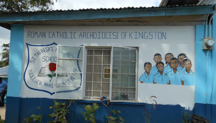 Our fifth project was to repair and renovate a school in the rural farming community of Mount Friendship, Jamaica. St. Theresa’s All Age School sits at the top of a hill, with no adequate roads leading to it. Established over a century ago, its mission is to ensure that all children from grades 1 to 6 receive a quality education and development of skills that will prepare them for the next educational level. The school is at capacity right now, with 112 children, and an estimated 40 or 50 more who want to attend but simply cannot due to a lack of space. The classrooms are so crowded with desks and students that there is no room to walk. On top of that, when Hurricane Sandy passed through in 2012, the school sustained damage that has yet to be repaired.